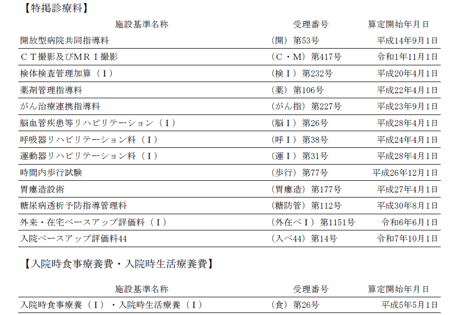 内科、外科、整形外科、泌尿器科、胃腸内科、循環器内科、神経内科、糖尿病内科、リハビリテーション科、皮膚科、リウマチ科、アレルギー科、放射線科